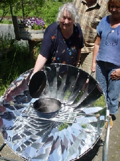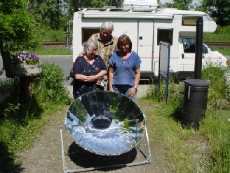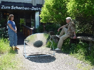 Ruckzuck stand der Solarkocher vor dem Haus und das