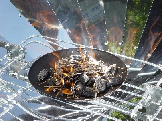 Der Solarkocher als Grillkohleanzünder ein neue Variante.